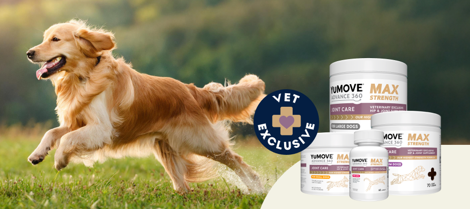 YuMOVE® Advance 360 Max Strength is Vetnique’s highest-strength joint support formula for dogs and cats, available exclusively through veterinarians.